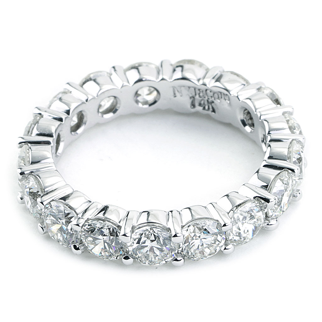 This eternity band is made of 14K white gold. It contains round I-J color and SI clarity diamonds weighing 4.01 CTTW.