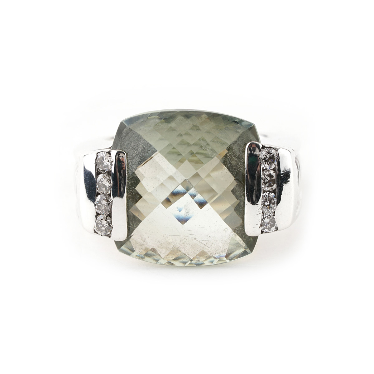 David Yurman Cable Cushion Prasiolite and Diamond Accent Sterling Silver Ring
