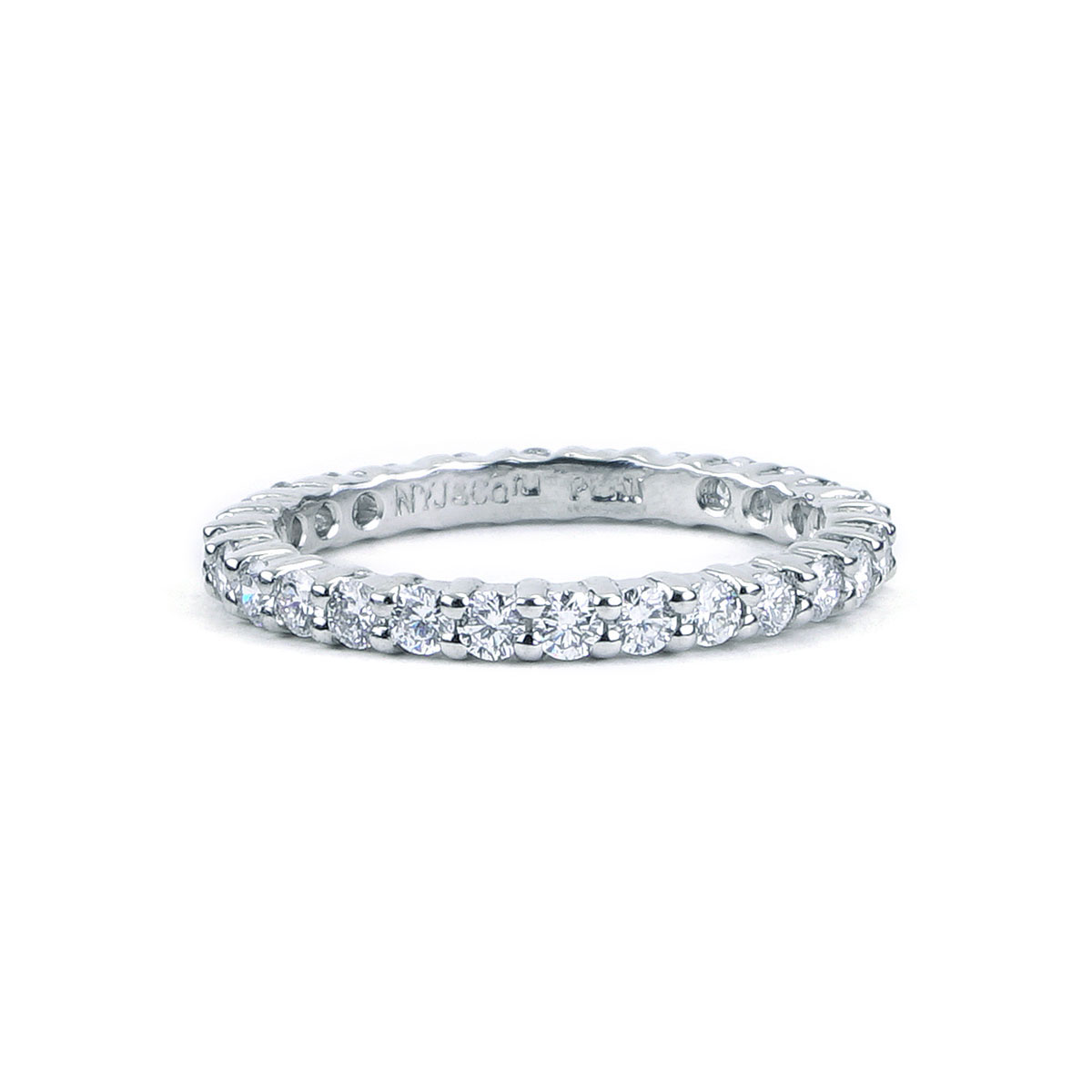 This eternity band is made of platinum and weighs 2.1 DWT. It contains 28 round cut diamonds G-H color, SI clarity weighing 1.00 CTTW.