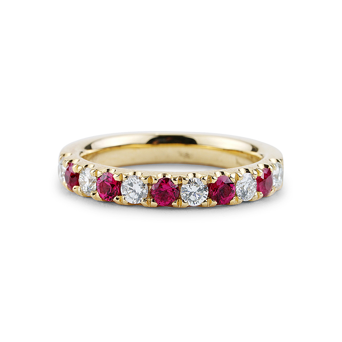 0.94 CTTW Alternating Ruby And Diamond Band In Yellow Gold