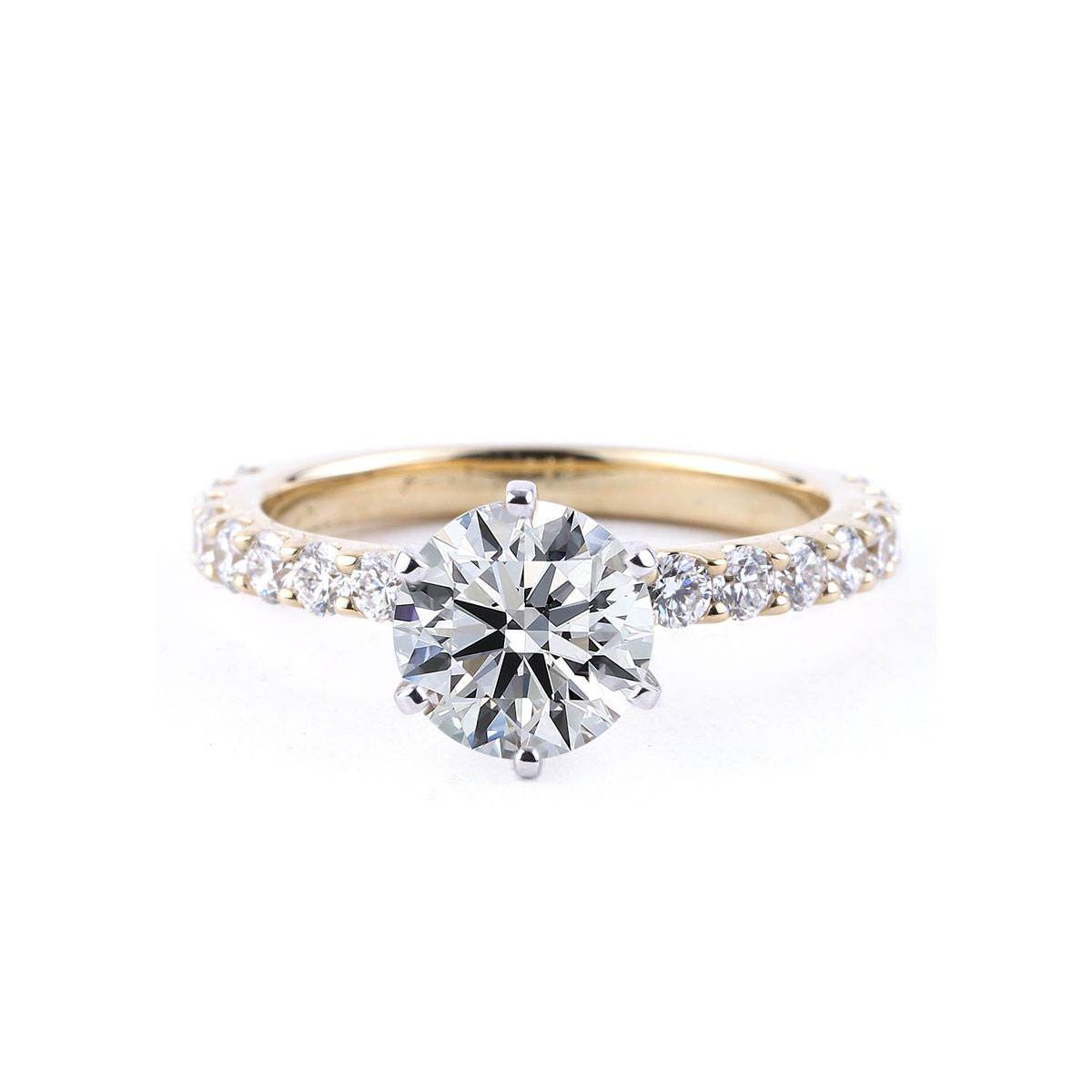 Shared Prong Six Prong Setting for a 1.00 CT Round Diamond in Yellow Gold