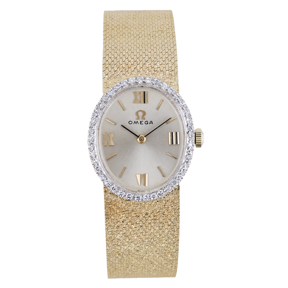 The case houses a manual movement and a silver dial featuring gold markers. It comes on a gold 14k yellow gold mesh bracelet. It has very light wear. Circa 1969.