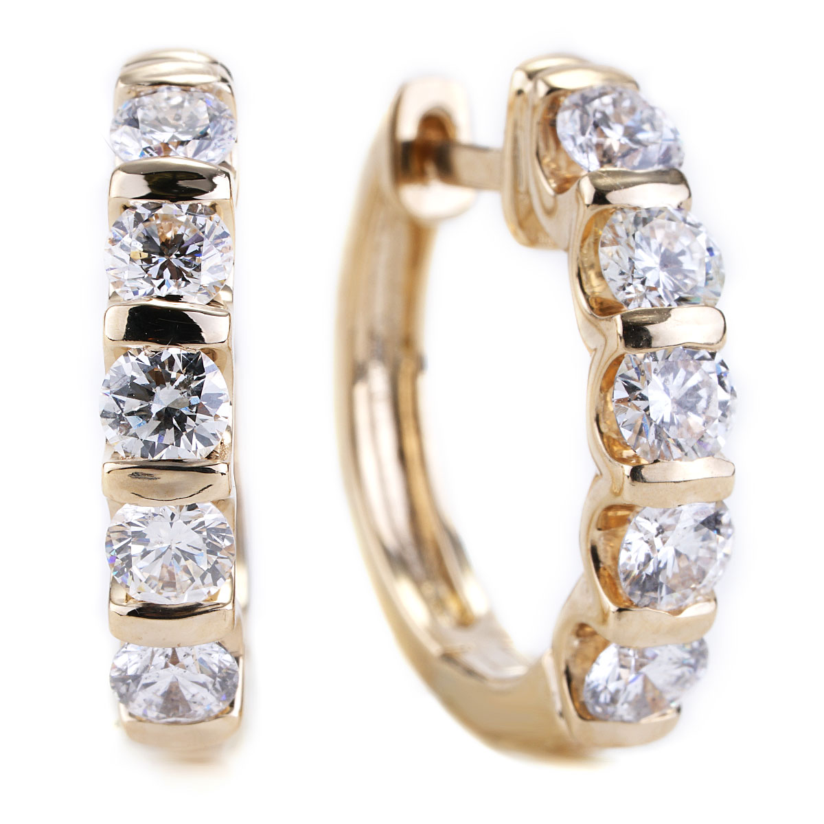 3/4 Inch 1.55 CTTW Diamond Hoop Earrings in Yellow Gold