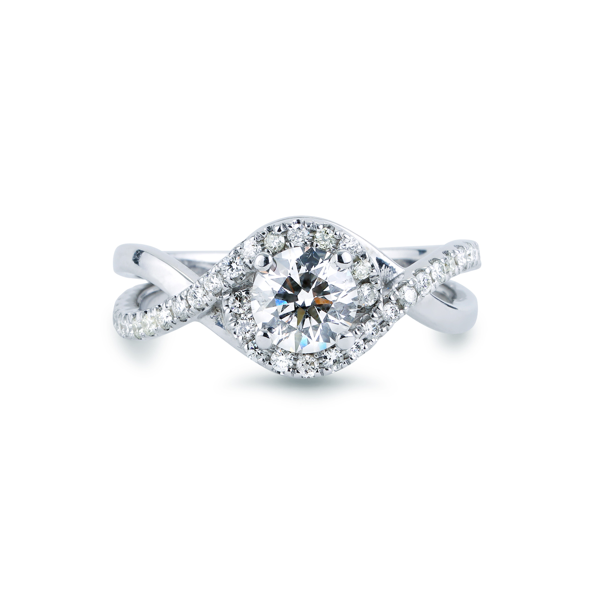 0.71 CT GIA Certified Round Center Twisted Diamond Halo Ring in White Gold
