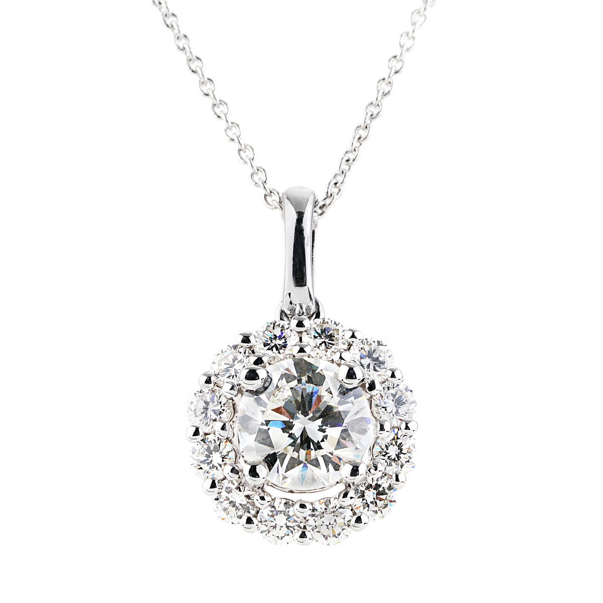 1.00 CT GIA Certified Diamond Halo Pendant in White Gold