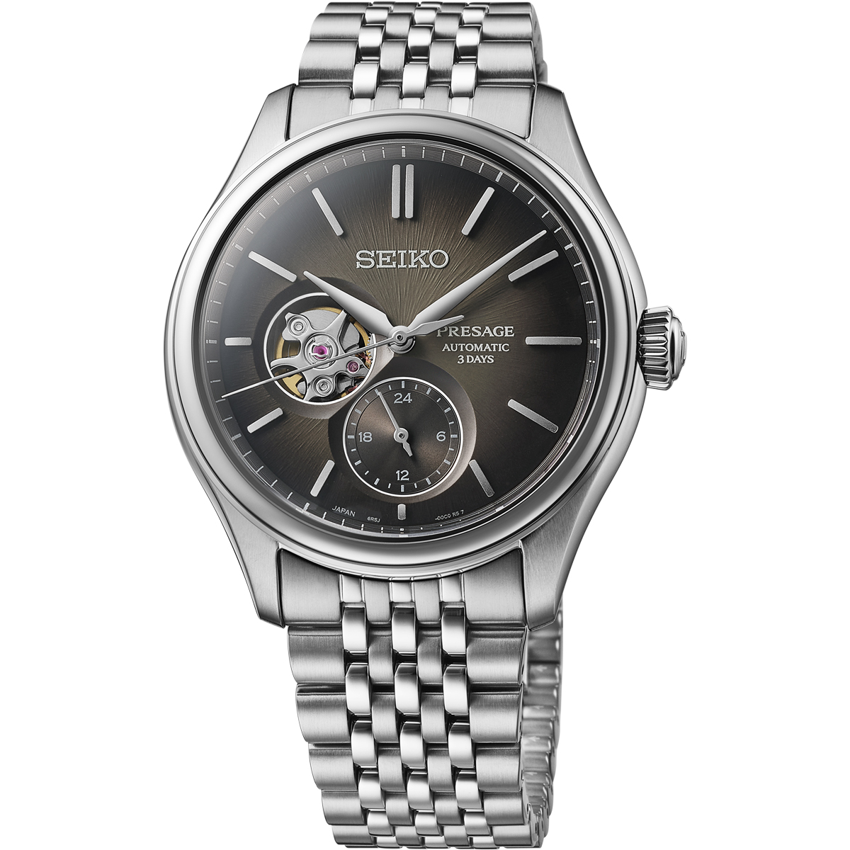 Seiko Presage Classic Series Grey Open Heart Dial Stainless Band