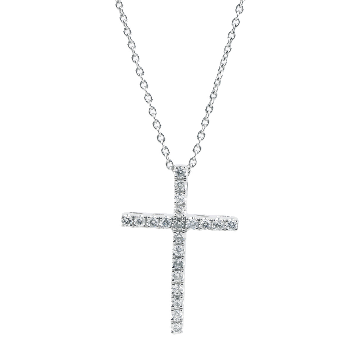 .75 Inch .13CTTW Diamond Cross Pendant in White Gold