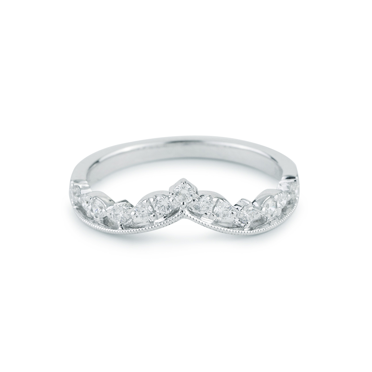 .24 CTTW V Shaped Diamond Fitted Band With Milgrain White gold