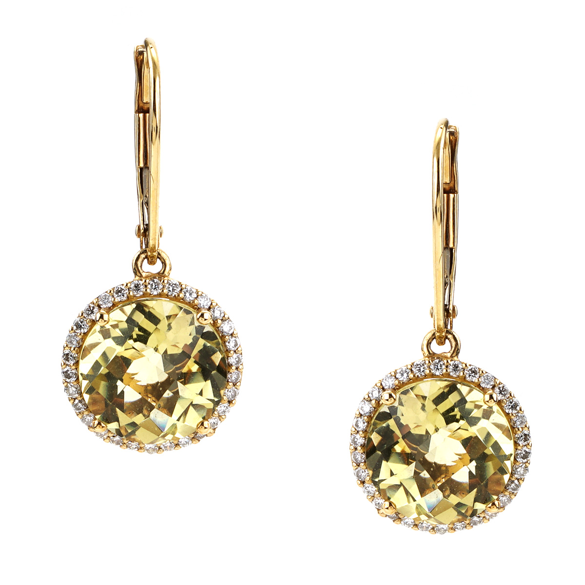 6.59 CTTW Lime Quartz and Diamond Halo Dangle Earrings Yellow Gold