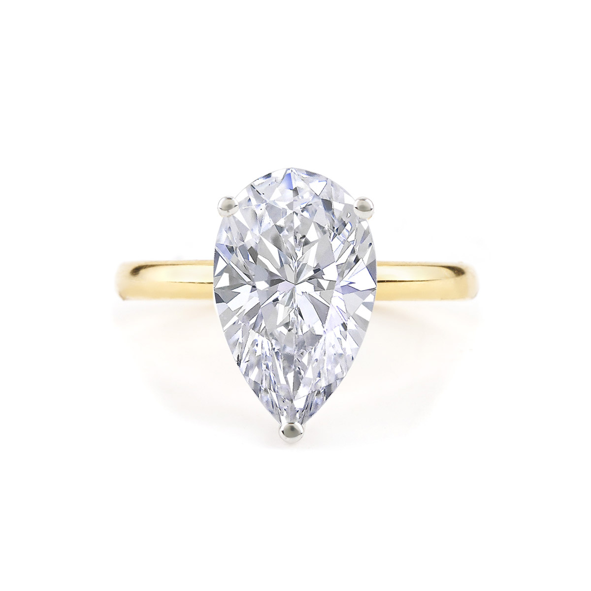 .15 CTTW Hidden Halo Diamond Three Prong Pear Shape Solitaire Yellow Gold