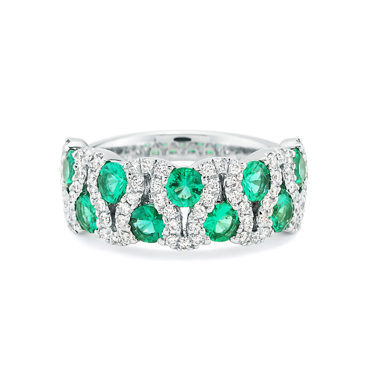 1.74 CTTW Wave Style Emerald and Diamond Band in White Gold