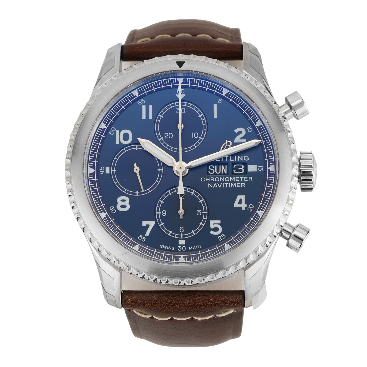 Breitling Navitimer Chronograph Blue Dial Brown Leather Strap Unworn