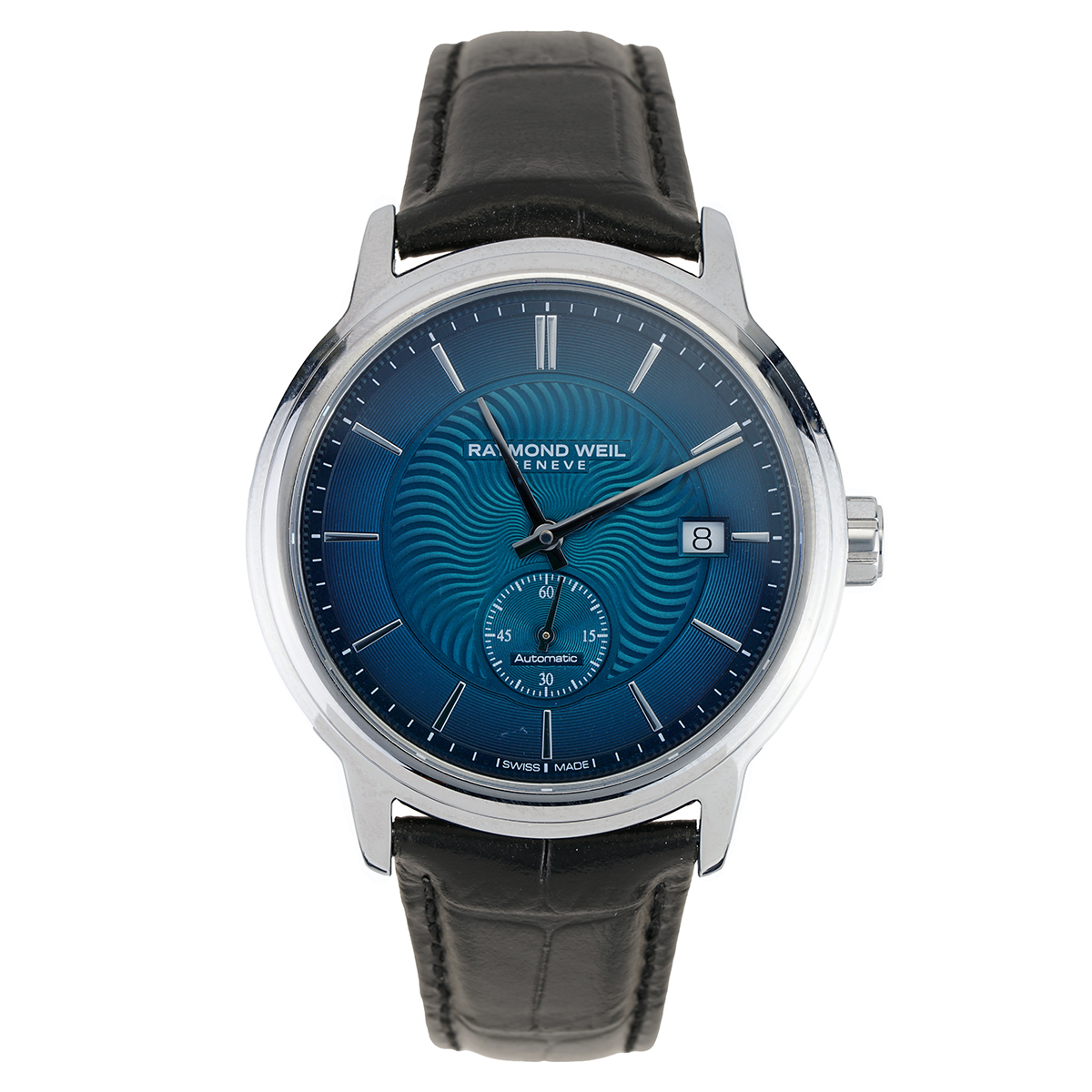 Raymond Weil Maestro Blue Guilloche Dial Black Leather Strap
