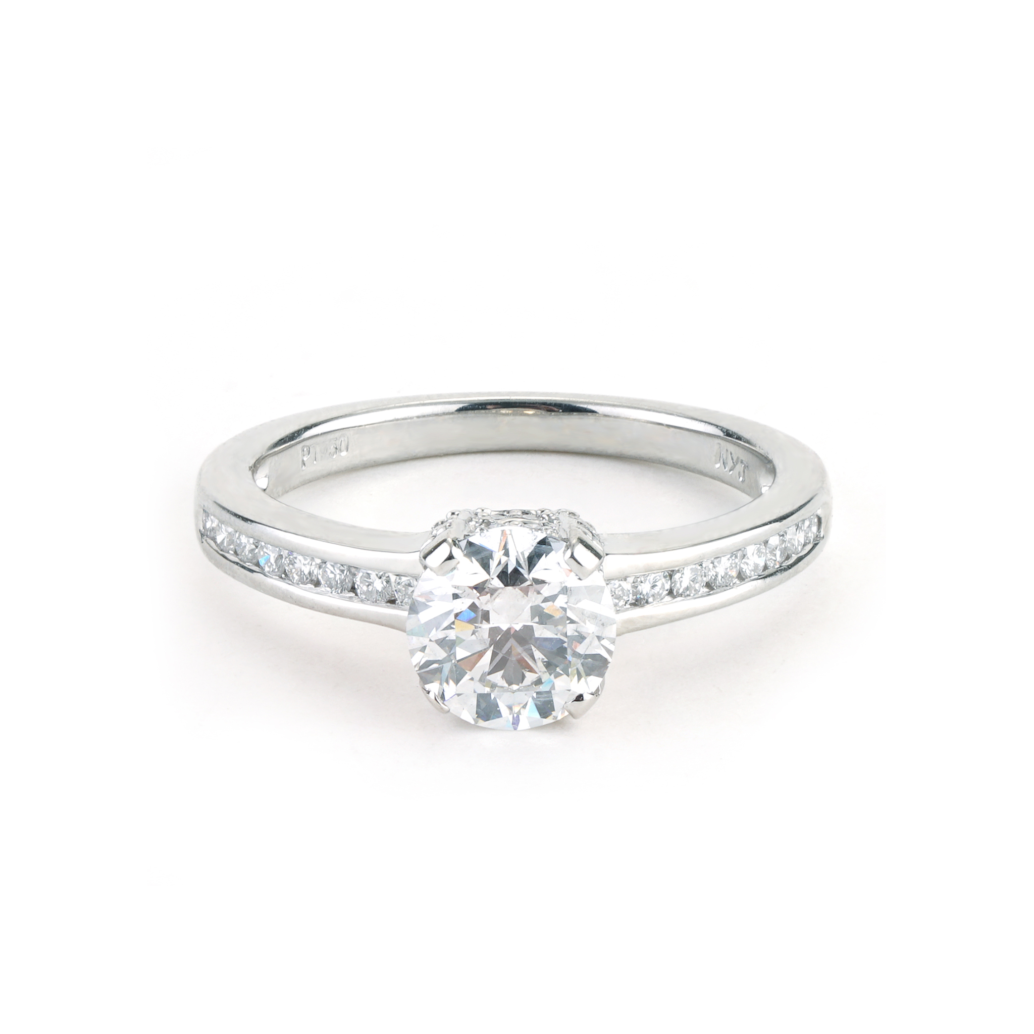 1.60 CTTW Round Diamond Center Channel Set Engagement Ring in Platinum