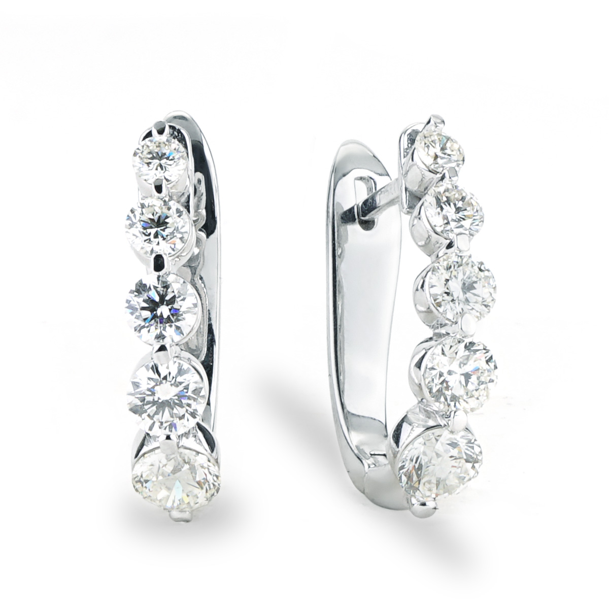 2 CTTW Single Prong Graduated Diamond Hoop Earrings in White Gold B Quality