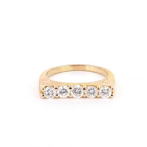 This vintage style stackable ring is made of 14K yellow gold and weighs 3.10 DWT (approx. 4.82 grams). It contains 5 round G-H color and diamonds weighing 1.00 CTTW.